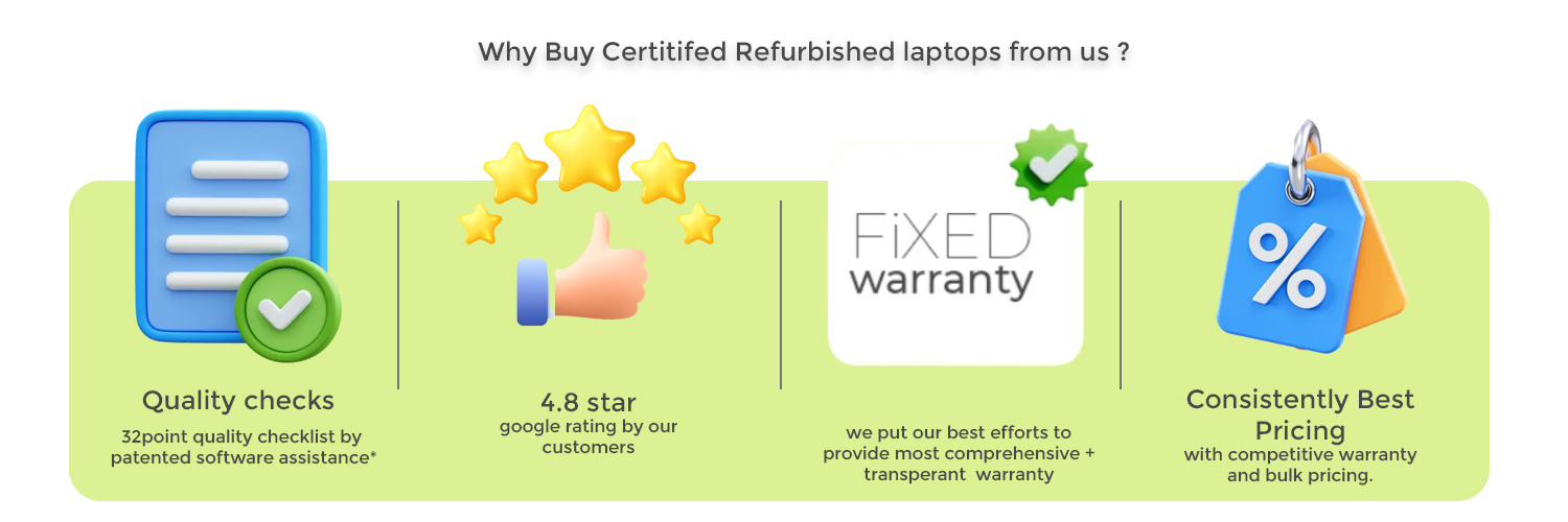 Refurbished laptops go through 32 point checklist. Second hand laptops are basically used laptops and does not come with warranty.